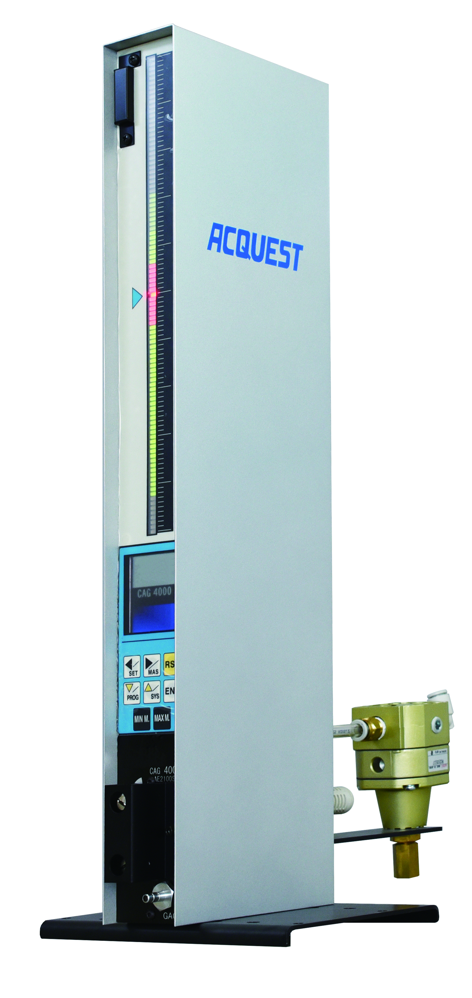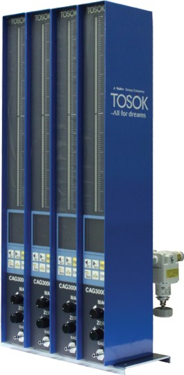 The CAG-4000 column type air gauge, micrometer display is a precision, non-contact measuring instrument when combined with a customized air probe sensor. Air gauge measurement is a non-destructive testing method that utilizes air flow and the resistance created between an object under test and the air gauge's sensing probe. The air resistance or back pressure changes with distance between the air probe and device under test. This air pressure change out of the air sensor can be scaled on a display to determine dimensional analysis as well as product acceptance. Due to its fast response, outstanding tolerance and accurate repeatability, the CAG-4000 air gauge micrometers are ideal for quality measurements on the production floor.